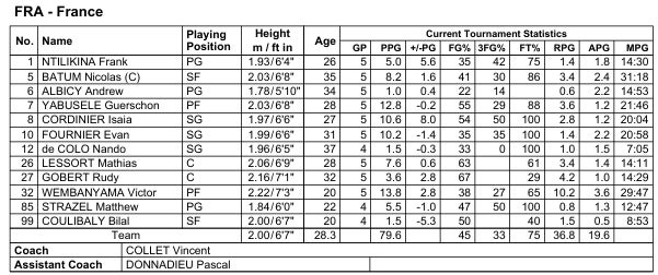 France is only scoring 79.6 points per game, and then includes an overtime contest against Japan in which they probably should have lost. For comparison, Serbia averaged 95 points per game, and Team USA averaged a cool 107 points per game.