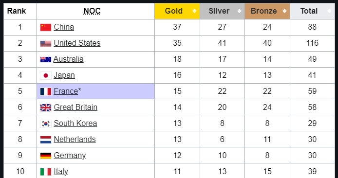It's an eerily similar task to what faced Team USA at Tokyo 2020, where they beat out China on the final day, thanks to some surprise medals, by a final count of 39 to 38.